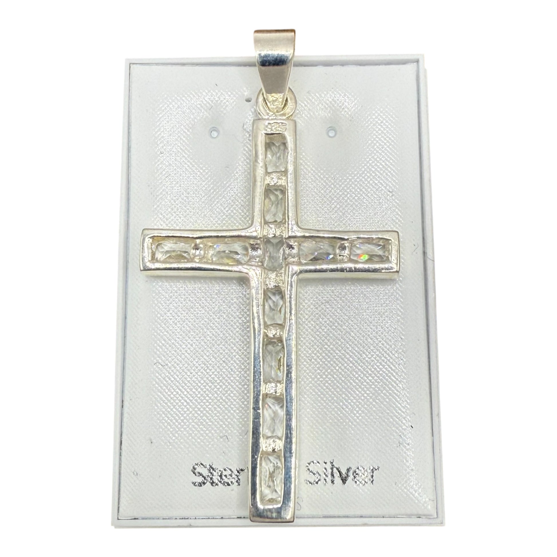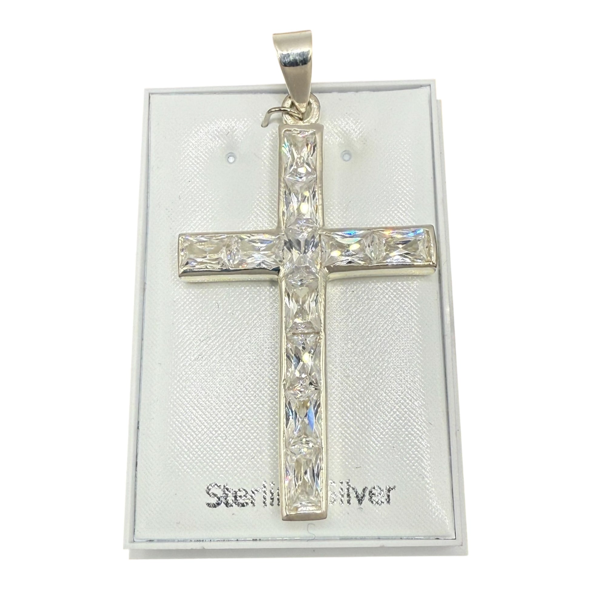 Sterling Silver Cubic Zirconia Cross Pendant – 55mm x 30mm, Hallmarked 925