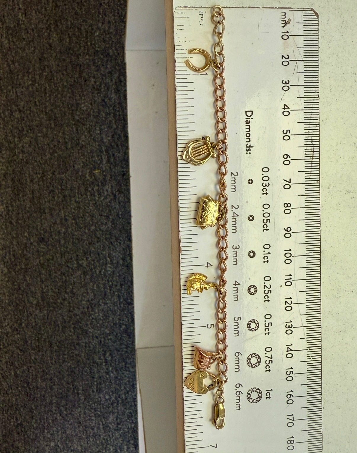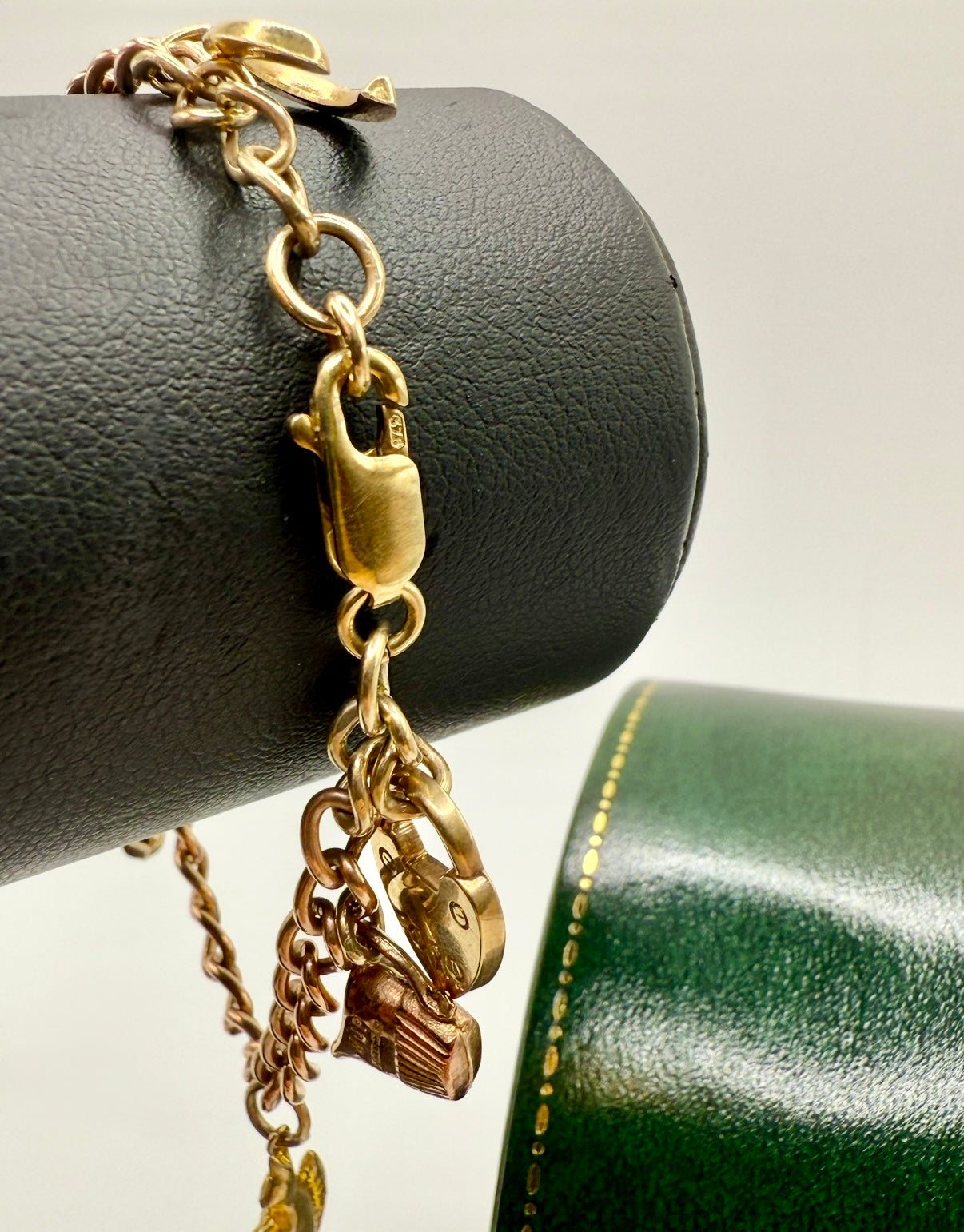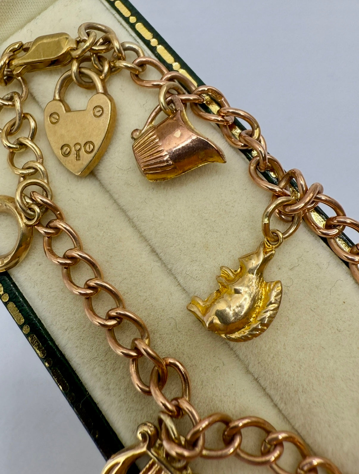 Featuring 6 unique 9ct gold charms on a classic curb chain with a secure lobster clasp, each piece tells its own little story: